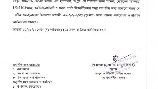 BDS Admission upon Test Result of Session 2025-26 After publishing MBBS/BDS Admission Test result all the procedures regarding admission at RCDC will have been processed from 5th February to 1st March 2026. Concerned candidates will be found in BDS Admission Test Result for all the......
