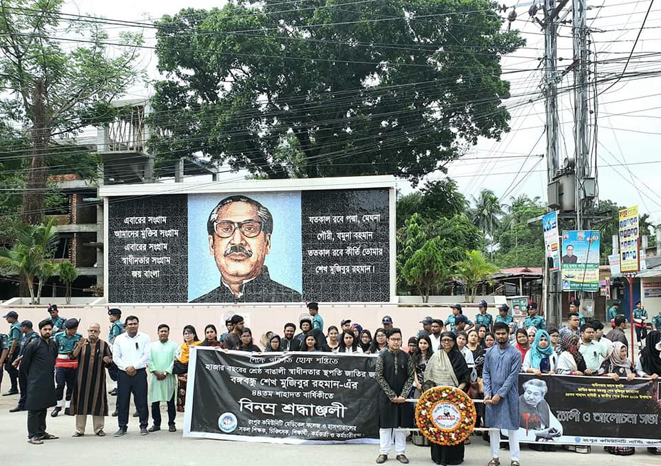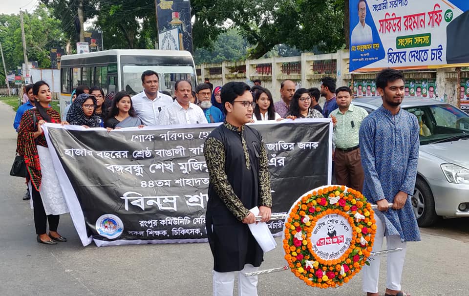 Homage was paid to the father of this nation and country’s founding president Sheikh Mujibur Rahman recalling his struggle for the independence of Bangladesh as the National Mourning Day was observed across the country along RCMC & RDC on Thursday marking the 44th anniversary of his assassination.
