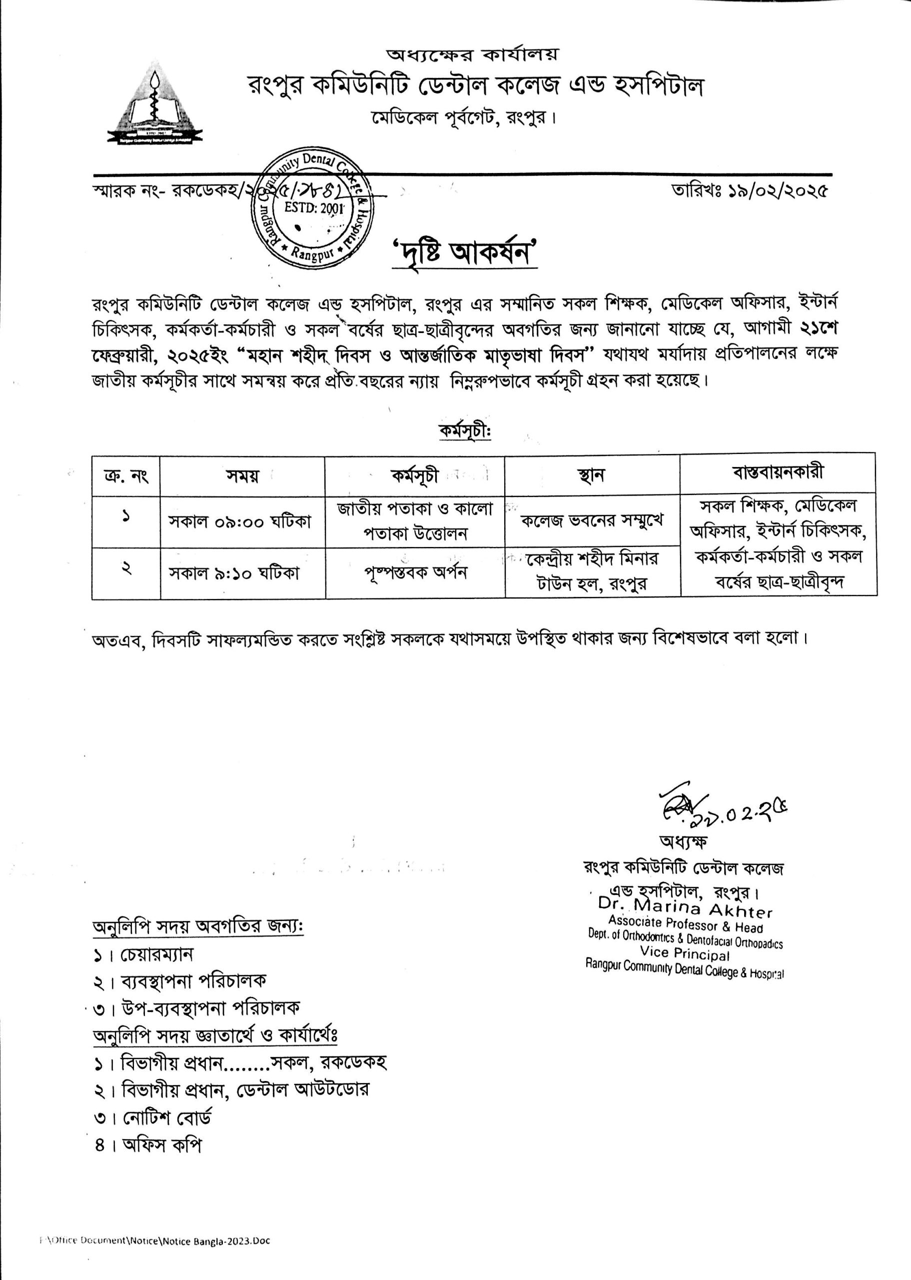 On 21st February, Rangpur Dental College & Hospital will arrange an event to honour the sacrifices of our martyrs who fought to attain the recognition of our mother tongue. On the day of International Mother language Day, 21st February 2023, the presence of all officials, teachers...