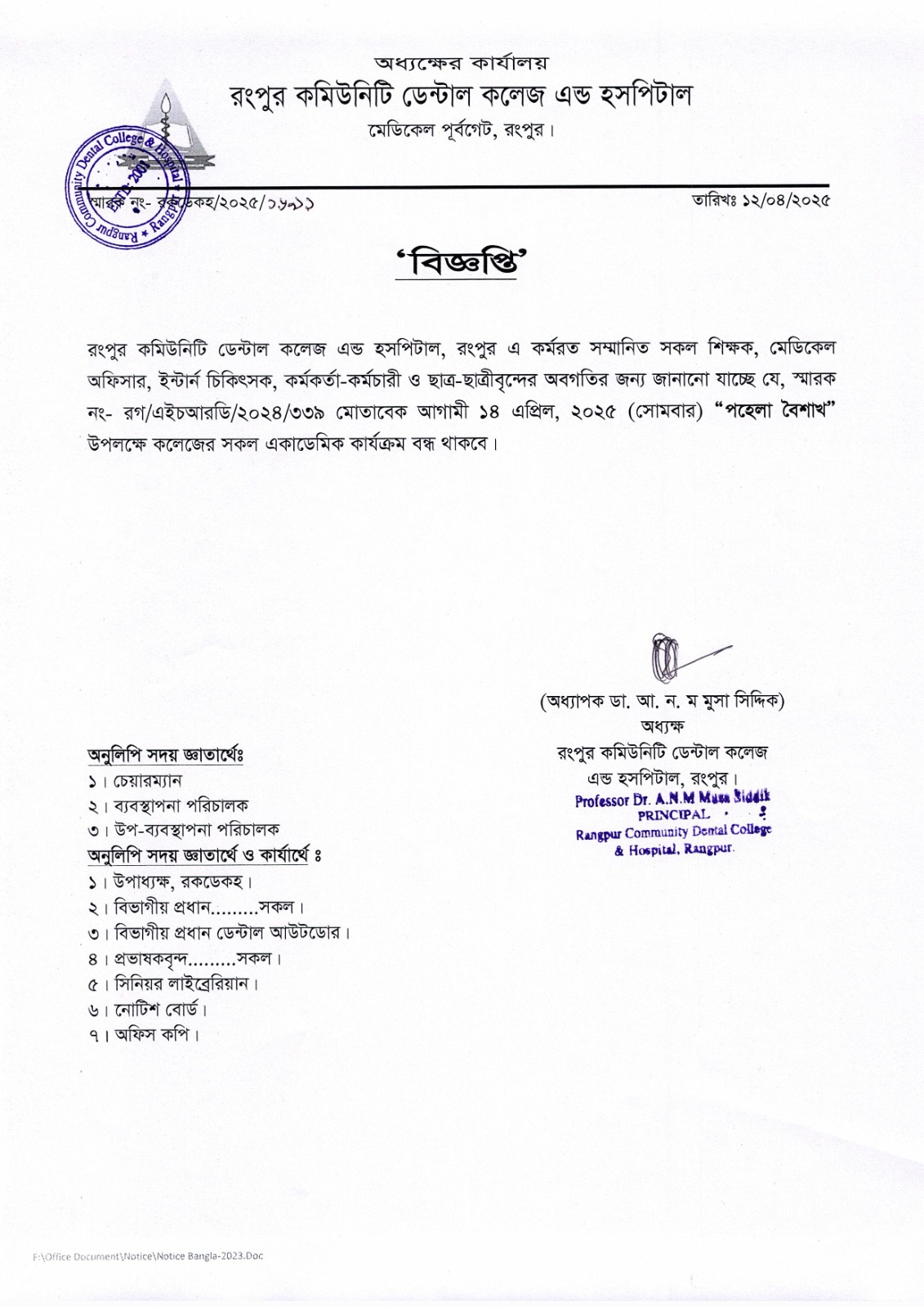 Rangpur Community Television (Event Date: 08-09-2024) published special news on the Orientation Program of 24th batch: Session 2023-2024 organized by Dental College at Rangpur Community Dental College and Hospital. The news portal reports our amazing success in this type of academic environtment for BDS Course...
