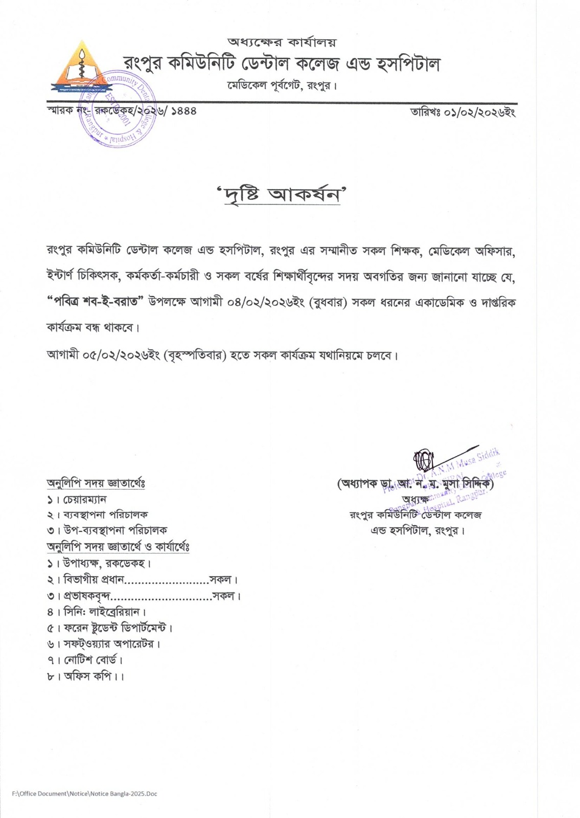 All classes of RCDC will remain closed on Wednesday, 4th February 2026 on account of ‘Shab-E-Barat’. All scheduled classes of RCDC will be held on Thursday, 5th March 2026 as usual as per Class Routines as Scheduled.